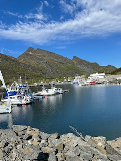 Nästa dag fick vi uppleva en fjordkryssning till Trollfjorden där vi bjöds på fisksoppa och fågelskådning. Havsörnar i mängd cirklade över vår vidöppna ögon tillsammans med sjöfåglar av alla slag som vi fick mata. Färden gick vidare till Svolvaer, Lofotens ”huvudstad” som blev våran bas två dygn. På slingriga vägar gick färden längst ett vackert landskap in i dalar och havsvikar och fjordar med grönskimrande vatten och sylvassa fjälltoppar var ett paradis för fotografer! Ett besök på Vikingamuseet Lofotr där det bjöds på lammkött och vikingabröd samt diverse vikingauppträdande.
