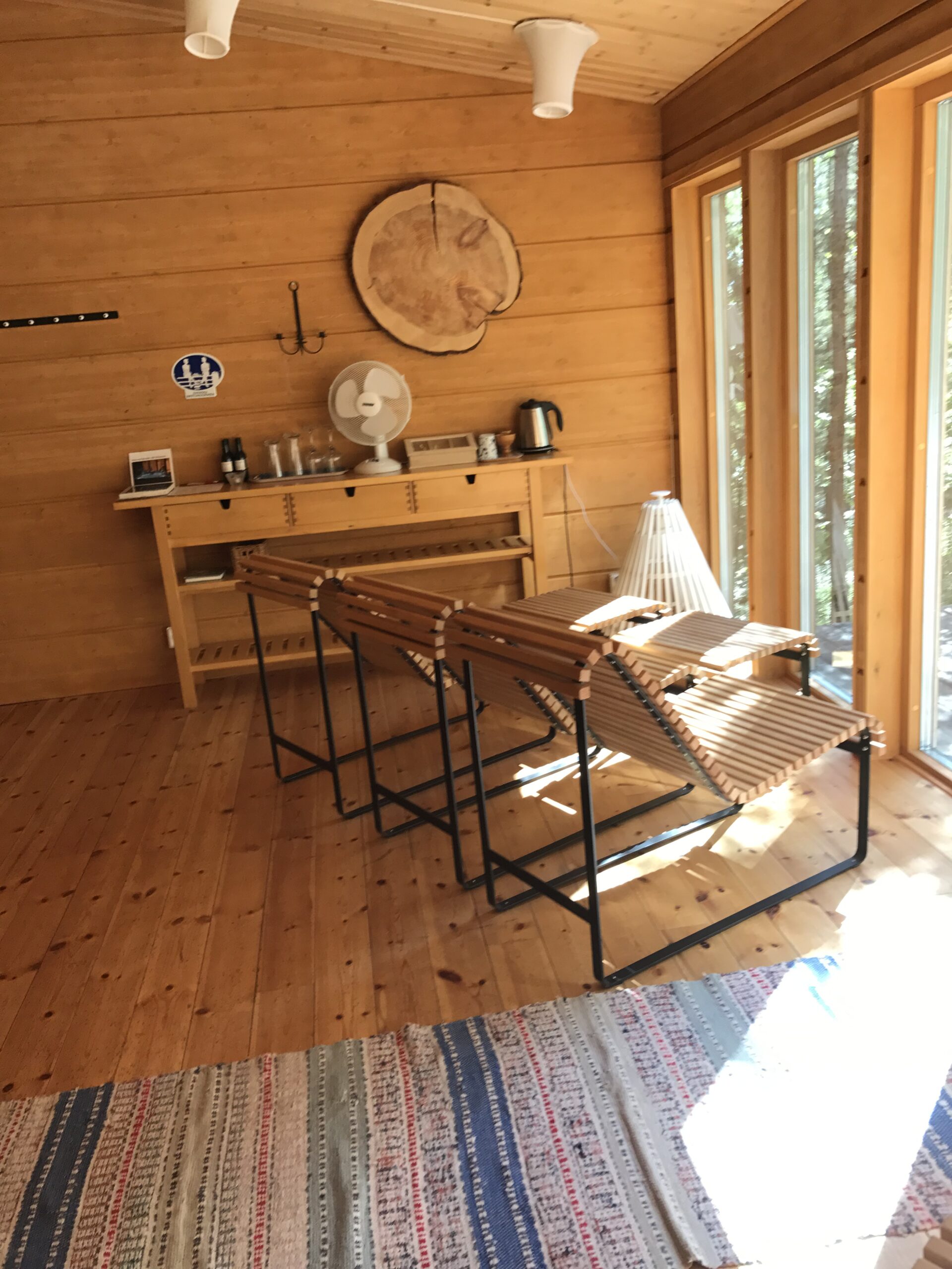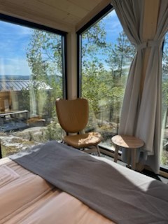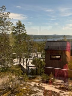 Platschefen informerade om bygget av de 40 stugor som är uppförda, om verksamheten och om det stora inflödet av turister från främst Belgien och Nederländerna. Turisterna landar i Finland och bussas sedan till Luppioberget där det skräddarsys aktiviteter av olika slag. Det är främst vintertid som gäller och då är en färd med draghundar en stor aktivitet. Kommande vinter är så gott som fullbokad av turister. Vi fick visning av en stuga samt deras fantastiska bastu- och spaanläggning. Flera av oss tog en promenad till toppen av Luppioberget, innan det var dags för lunch i den fina restaurangen.