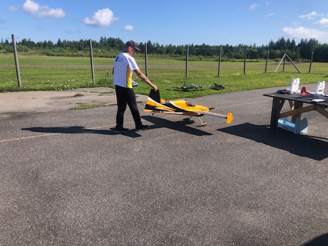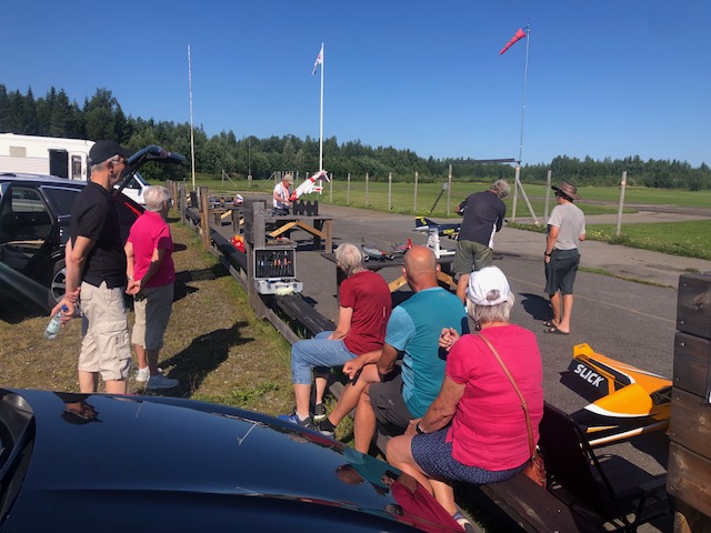 Den 7 augusti cyklade 7 aktiva i strålande sol till modellflygfältet. Där kollade vi på RC-klubbens stora intresse, små och något mindre flygplan. Kul att se deras övningar i luften. Sen blev det grillade hamburgare innan hemfärd.